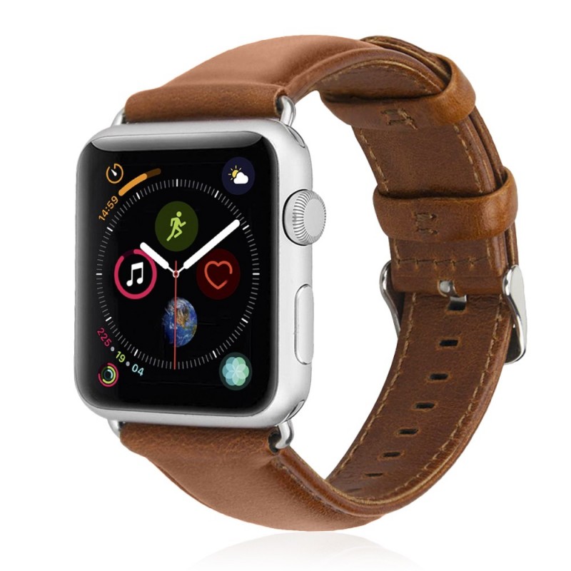 Correa de piel fabricada en cuero de alta calidad para Apple Watch de 38mm / 40mm. • 12 posiciones • Broche metálico • Perímetro mínimo aproximado: 147mm • Perímetro máximo aproximado: 215mm Compatible con Apple Watch: Series 1, Series 2, Series 3, Series 4 Cuero Aleación_de_Metal