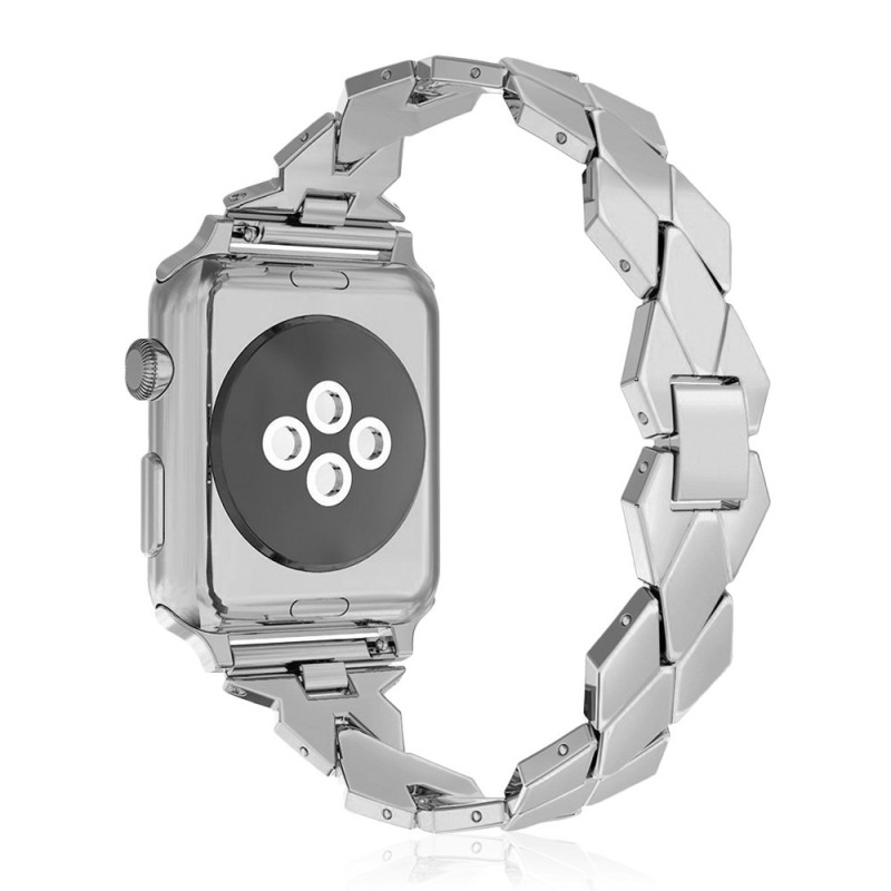 Correa de acero inoxidable y cierre mariposa oculto para Apple Watch de 38mm / 40mm. • Cierre de seguridad de mariposa oculto. • Multiples eslabones removibles. • Perímetro mínimo: 160mm • Perímetro máximo: 212mm Compatible con Apple Watch: Series 1, Series 2, Series 3, Series 4. Metal Aleación_de_Metal