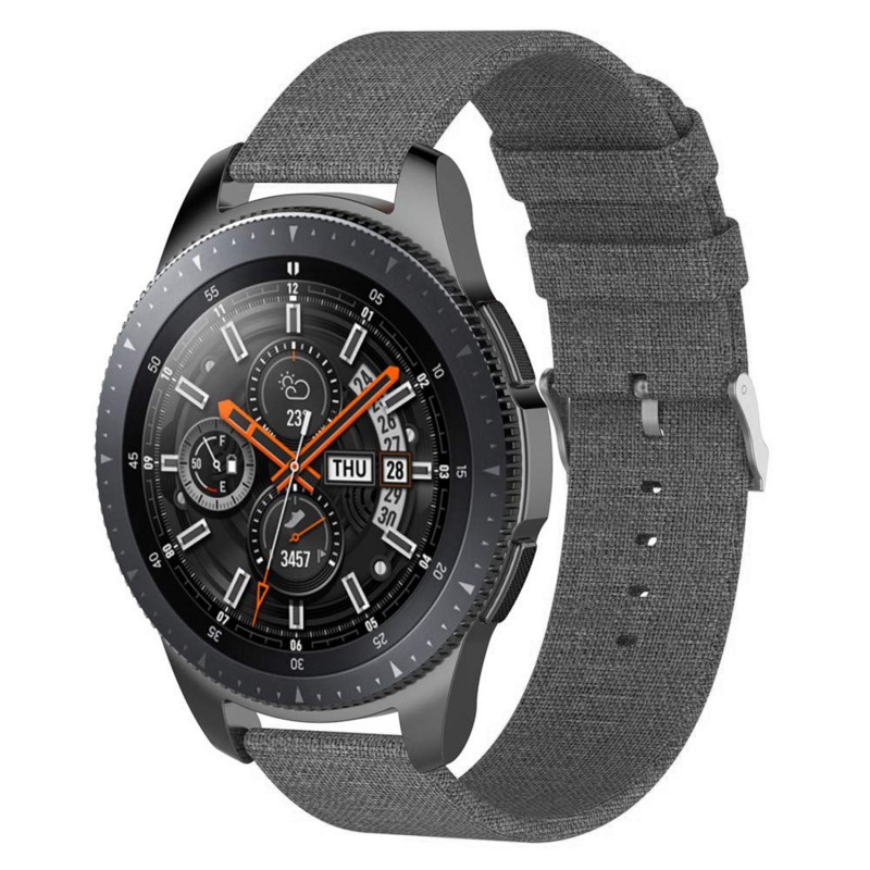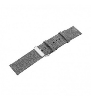Correa universal de lona canvas de tacto suave de alta calidad para Smartwatch y relojes de 20 mms. • 10 posiciones • Broche hebilla metálico. • Sistema Quick Release de fácil cambio. • Perímetro máx de 180 mms más la caja del dispositivo. Compatible con: Samsung Gear S2 Classic (SM-R732/ SM-R735), Samsung Gear Sport (SM-R600), Samsung Galaxy Watch 42mm (SM-R810/SM-R815), Galaxy Active 40mm (SM-R500), Huawei Watch 2 (Sport), Moto 360 2nd Gen Mens 42mm, Withings Steel HR 40mm/Steel HR Sport 40mm, PEBBLE Time Round Large, Fossil Q Gazer/Control, Bradley Timepiece, Garmin Vivomove HR/ Vivoactive 3, Suunto 3 Fitness, Ticwatch 2 / Ticwatch E / C2 20mm, Amazfit Bip Xiaomi Smartwatch y todos los relojes estándar de 20 mm de ancho. Lona_Canvas Aleación_de_Metal