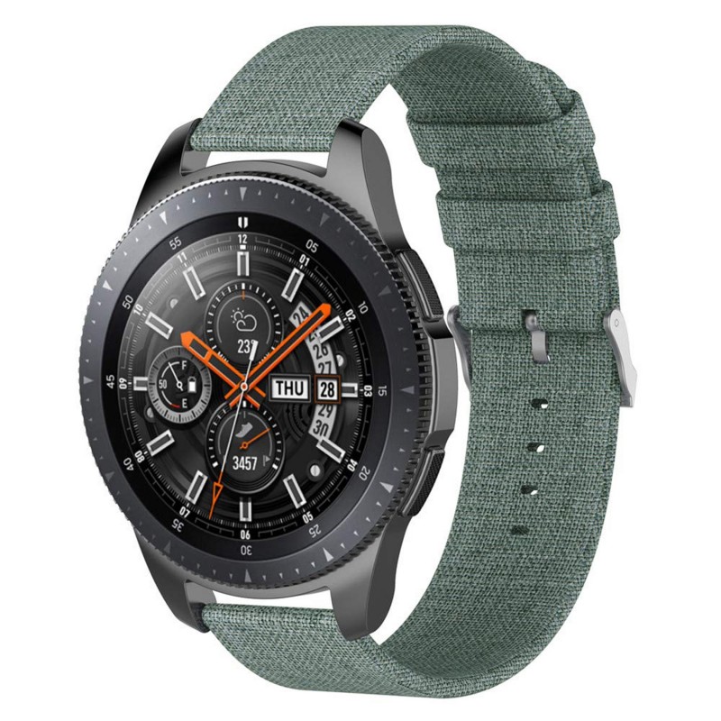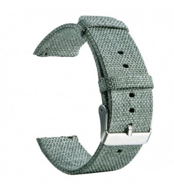 Correa universal de lona canvas de tacto suave de alta calidad para Smartwatch y relojes de 20 mms. • 10 posiciones • Broche hebilla metálico. • Sistema Quick Release de fácil cambio. • Perímetro máx de 180 mms más la caja del dispositivo. Compatible con: Samsung Gear S2 Classic (SM-R732/ SM-R735), Samsung Gear Sport (SM-R600), Samsung Galaxy Watch 42mm (SM-R810/SM-R815), Galaxy Active 40mm (SM-R500), Huawei Watch 2 (Sport), Moto 360 2nd Gen Mens 42mm, Withings Steel HR 40mm/Steel HR Sport 40mm, PEBBLE Time Round Large, Fossil Q Gazer/Control, Bradley Timepiece, Garmin Vivomove HR/ Vivoactive 3, Suunto 3 Fitness, Ticwatch 2 / Ticwatch E / C2 20mm, Amazfit Bip Xiaomi Smartwatch y todos los relojes estándar de 20 mm de ancho. Lona_Canvas Aleación_de_Metal
