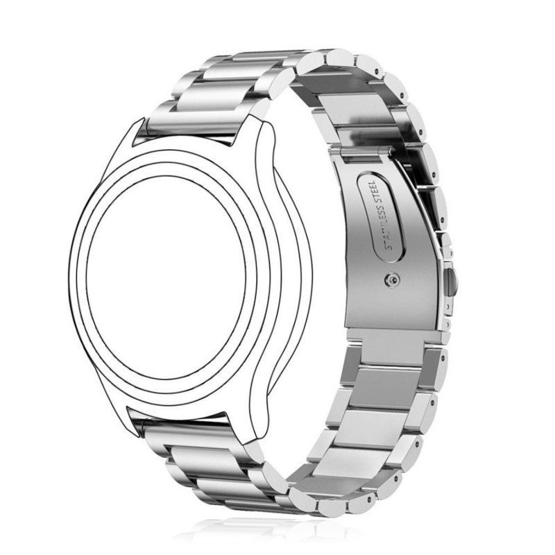 Correa de acero inoxidable universal para Smartwatch y relojes de 20 mms. • Cierre de seguridad. • Hasta 10 eslabones removibles. • Sistema Quick Release de fácil cambio. • Perímetro máx muñeca: Hasta 19 cms más medida de caja del dispositivo. Compatible con: Samsung Gear S2 Classic (SM-R732/ SM-R735), Samsung Gear Sport (SM-R600), Samsung Galaxy Watch 42mm (SM-R810/SM-R815), Galaxy Active 40mm (SM-R500), Huawei Watch 2 (Sport), Moto 360 2nd Gen Mens 42mm, Withings Steel HR 40mm/Steel HR Sport 40mm, PEBBLE Time Round Large, Fossil Q Gazer/Control, Bradley Timepiece, Garmin Vivomove HR/ Vivoactive 3, Suunto 3 Fitness, Ticwatch 2 / Ticwatch E / C2 20mm, Amazfit Bip Xiaomi Smartwatch y todos los relojes estándar de 20 mm de ancho. Acero_Inoxidable Aleación_de_Metal