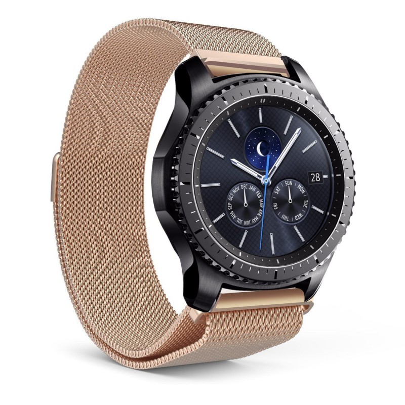 Correa metálica con cierre magnético de seguridad para Smartwatch y relojes de 22 mms. • Múltiples posiciones gracias al sistema de hebilla y broche magnético. • Hebilla con sistema de seguridad. • Sistema Quick Release de fácil cambio. • Podrás ajustarla al milímetro al tamaño de tu muñeca. • Sistema de eslabones con máxima flexibilidad de posición. • Perímetro máximo aproximado: hasta 24 cms más medidas de la caja del dispositivo. Compatible con: Samsung Gear S3 Frontier/ Classic,Samsung Galaxy Watch 46mm SM-R800, Vector Luna/ Meridian, Moto 360 2 gen 46mm Men’s, Pebble Time/Pebble Time Steel/ Pebble watch/ Pebble 2 watch, LG G Watch/ R/ Urbane, Asus ZenWatch 1 WI500Q / ASUS Zenwatch 2nd Gen [1.63〃], Fossil Q Marshal/ Wander/ Founder Gen 2/ Q Explorist Gen 3, Huami Amazfit Pace, Huawei Watch 2 Classic todos los relojes estándar de 22 mm de ancho. Aleación_de_Metal Aleación_de_Metal