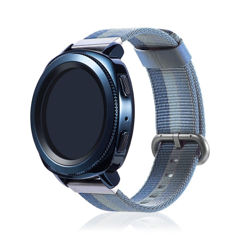 Correa universal de lona canvas diseño rayado de tacto suave de alta calidad para Smartwatch y relojes de 22 mms. •12 posiciones • Broche hebilla metálico. • Sistema Quick Release de fácil cambio. • Perímetro máx de 180 mms más la caja del dispositivo. Compatible con: Samsung Gear S3 Frontier/ Classic,Samsung Galaxy Watch 46mm SM-R800, Vector Luna/ Meridian, Moto 360 2 gen 46mm Men’s, Pebble Time/Pebble Time Steel/ Pebble watch/ Pebble 2 watch, LG G Watch/ R/ Urbane, Asus ZenWatch 1 WI500Q / ASUS Zenwatch 2nd Gen [1.63〃], Fossil Q Marshal/ Wander/ Founder Gen 2/ Q Explorist Gen 3, Huami Amazfit Pace, Huawei Watch 2 Classic todos los relojes estándar de 22 mm de ancho. Nylon Aleación_de_Metal