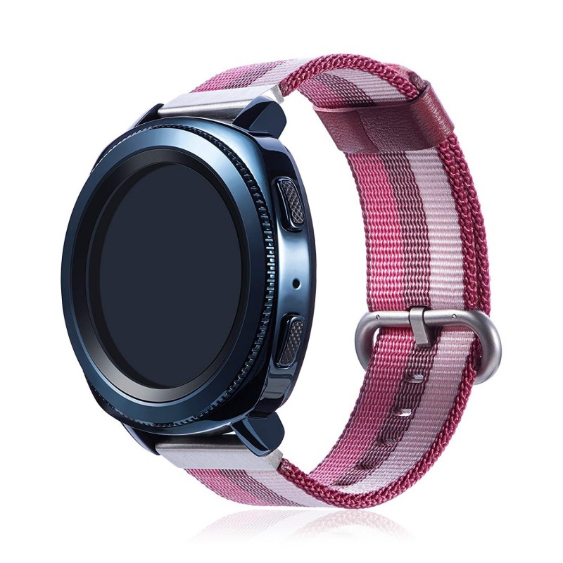 Correa universal de lona canvas diseño rayado de tacto suave de alta calidad para Smartwatch y relojes de 22 mms. •12 posiciones • Broche hebilla metálico. • Sistema Quick Release de fácil cambio. • Perímetro máx de 180 mms más la caja del dispositivo. Compatible con: Samsung Gear S3 Frontier/ Classic,Samsung Galaxy Watch 46mm SM-R800, Vector Luna/ Meridian, Moto 360 2 gen 46mm Men’s, Pebble Time/Pebble Time Steel/ Pebble watch/ Pebble 2 watch, LG G Watch/ R/ Urbane, Asus ZenWatch 1 WI500Q / ASUS Zenwatch 2nd Gen [1.63〃], Fossil Q Marshal/ Wander/ Founder Gen 2/ Q Explorist Gen 3, Huami Amazfit Pace, Huawei Watch 2 Classic todos los relojes estándar de 22 mm de ancho. Nylon Aleación_de_Metal