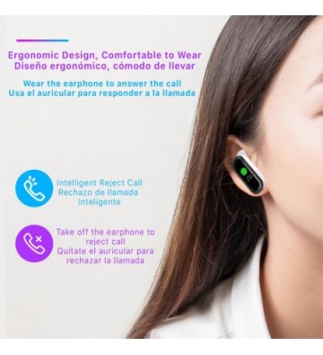 • Manos libres incorporado en la pulsera, extraíble, con auricular ergonómico.