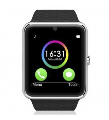 TEKKIWEAR.Smartwatch GT08 bluetooth con SIM, cámara y micro SD. Incluye micro SD de 32GB clase 10 Kingston. Bluetooth 3.0 iOS + Android UNICA.4x1x4,5 cm. COLOR: Negro Plata.