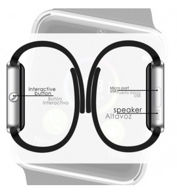 Smartwatch bluetooth con pantalla táctil 1,54" TFT LCD 2.5D de 240*240 pixeles de resolución a todo color. Posibilidad de tarjeta micro SIM y micro SD de hasta 32Gb. Con cámara integrada.