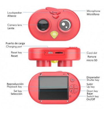 Cámara digital de video y fotos con pantalla táctil de alta definición de 2,36 pulgadas.