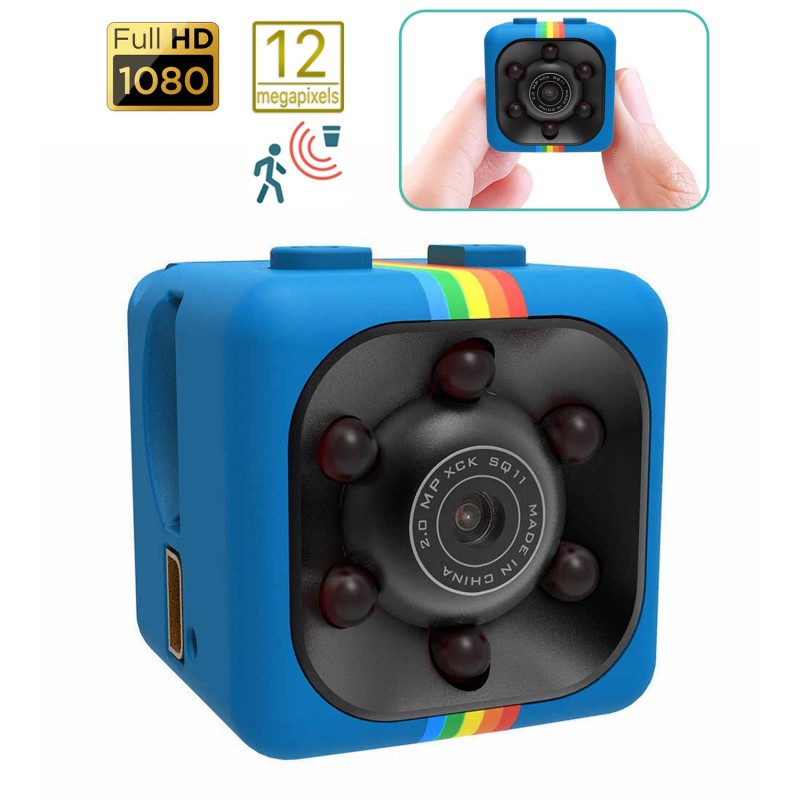 DAM.Micro cámara SQ11 Full HD 1080 con visión nocturna y sensor de movimiento. UNICA.2,5x2,5x2,5 cm. COLOR: Azul .