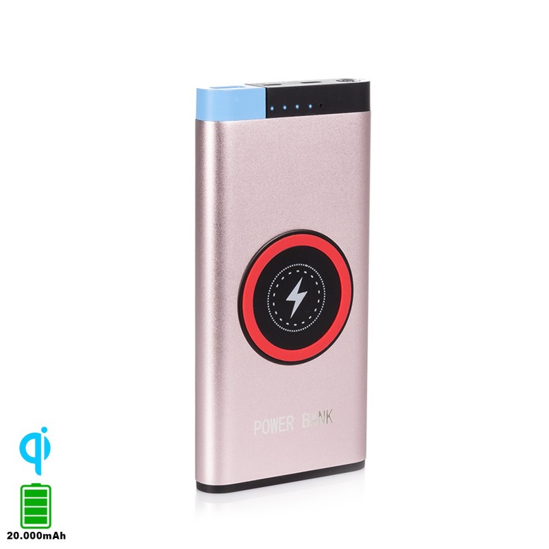 DAM.PowerBank P31 Inalámbrico Qi de 20.000 mAh con salida USB de 2.1A. UNICA.7,5x2x15 cm. COLOR: Rosa .