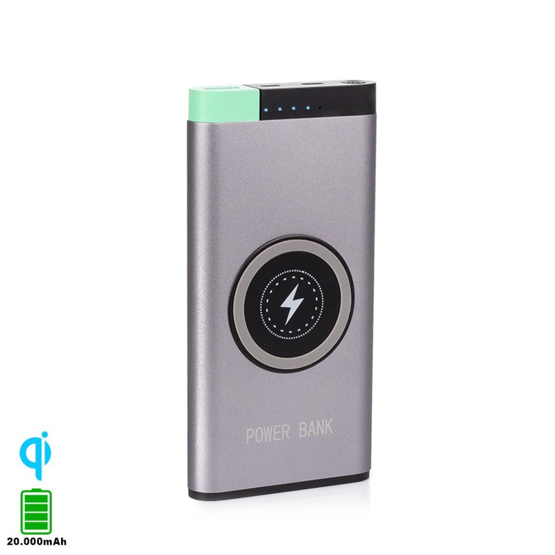 DAM.PowerBank P31 Inalámbrico Qi de 20.000 mAh con salida USB de 2.1A. UNICA.7,5x2x15 cm. COLOR: Plata .