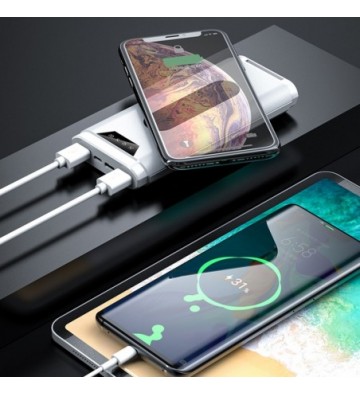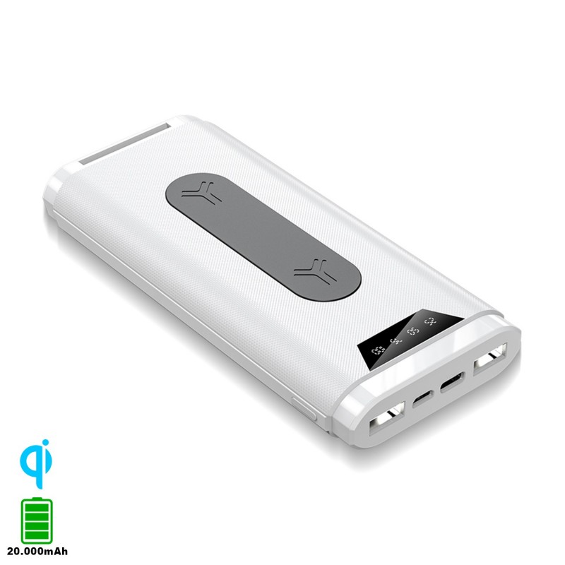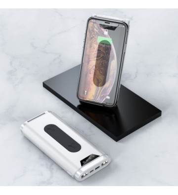 PowerBank con carga inalambrica Qi y stand de sujeción incorporado.