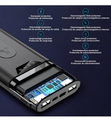 • Doble conexión de entrada para su recarga, mediante micro USB y USB-C.