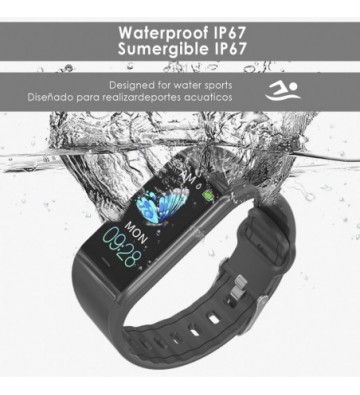 DAM.Brazalete inteligente B88 GPS, pantalla color, monitor presión sanguínea, notificaciones. UNICA.25x2x0,9 cm. COLOR: Negro .