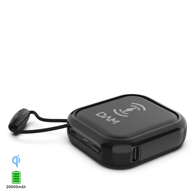 DAM.PowerBank inalámbrico Qi multiposición de 20.000 mAh, doble salida USB 2A. UNICA.8x2,5x8 cm. COLOR: Negro .