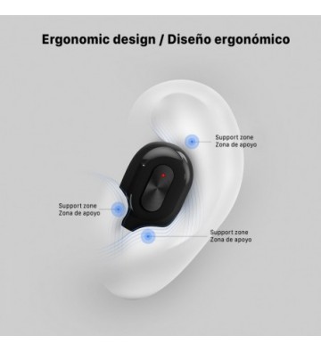 Los auriculares podrán ser utilizados conjuntamente, disfrutando de un sonido estereo real, o individualmente, especialmente útil mientras se utiliza su función manos libres. Incluyen micrófono incorporado.