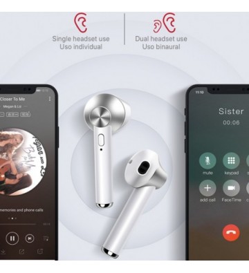 - TWS: True Wireless Stereo, consigue un sonido estereo sin cables, ambos auriculares se encuentran separados, con distinción de auricular izquierdo y derecho.