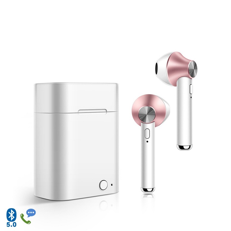 DAM.Auriculares TWS D012 Bluetooth 5.0 con base de carga 500mah. UNICA.5,4x4,2x2,3 cm. COLOR: Oro Rosa .