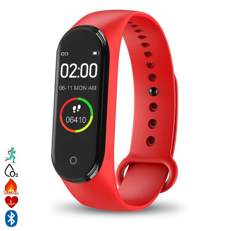 DAM.Brazalete inteligente Bluetooth AK-M4 con monitor cardiaco, monitor de presion arterial y modo multideporte. UNICA.1,9x1,1x5,5 cm. COLOR: Rojo .