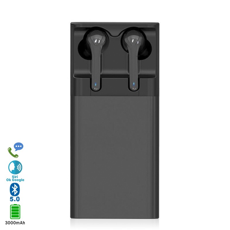 DAM.Auriculares G9 In-Ear Bluetooth 5.0 estéreo con base de carga de 3000mAh y powerbank. UNICA.8x3x5,6 cm. COLOR: Gris Oscuro .
