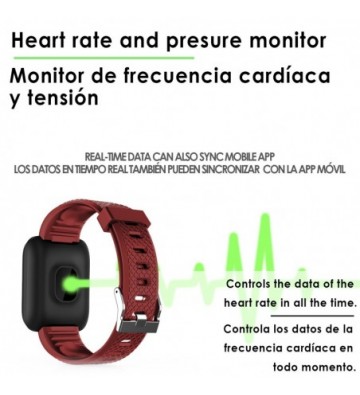 DAM.Brazalete inteligente ID116 Bluetooth 4.0 pantalla color, monitor cardiaco, pulso y modo multideporte. UNICA.3,5x1,3x4,2 cm. COLOR: Rojo .