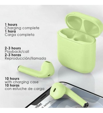 DAM.Auriculares DAM D120 TWS Bluetooth 5.0 táctiles con base de carga y sincronización automática con ventana emergente. UNICA.4,2x2x5,3 cm. COLOR: Verde Claro .