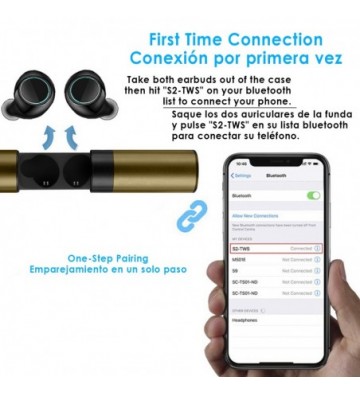 Auriculares S2 estéreo TWS con conexión Bluetooth 5.0 + EDR.