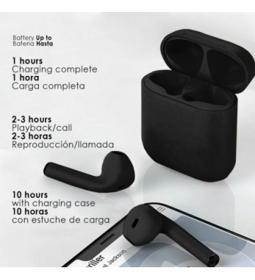 DAM.Auriculares DAM D120 TWS Bluetooth 5.0 táctiles con base de carga y sincronización automática con ventana emergente. UNICA.4,2x2x5,3 cm. COLOR: Negro .