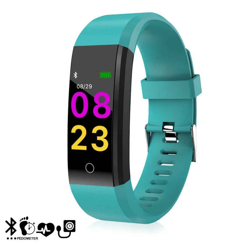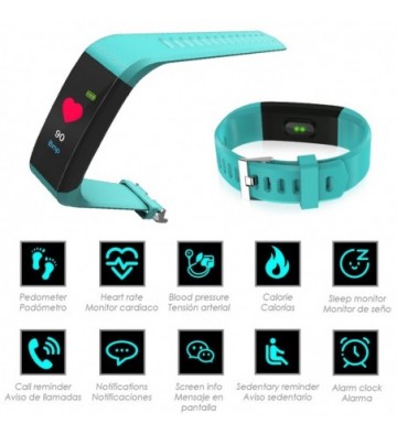 DAM.Brazalete inteligente ID115 con monitor cardíaco, presión sanguínea y notificaciones para iOS y Android. Bluetooth 4.0 iOS + Android UNICA.4,5x2x1,1 cm. COLOR: Aguamarina .