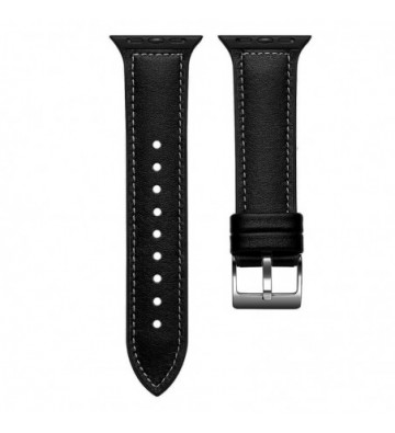 DAM.Correa de cuero genuino compatible iWatch 42mm / 44mm. UNICA.22x2,4x0,25 cm. COLOR: Negro .