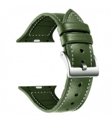 DAM.Correa de cuero genuino compatible iWatch 42mm / 44mm. UNICA.22x2,4x0,25 cm. COLOR: Verde .