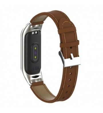 Correa de cuero genuino con carcasa metalica compatible con Xiaomi Band M3 y M4