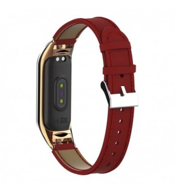 DAM.Correa de cuero genuino con carcasa metalica compatible con Xiaomi Band M3 y M4. UNICA.25x2x1,3 cm. COLOR: Rojo Oro Rosa.