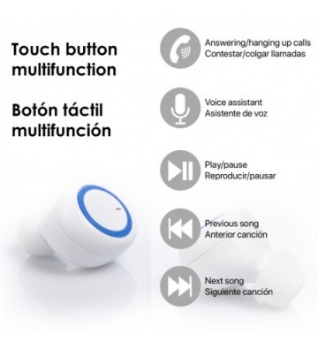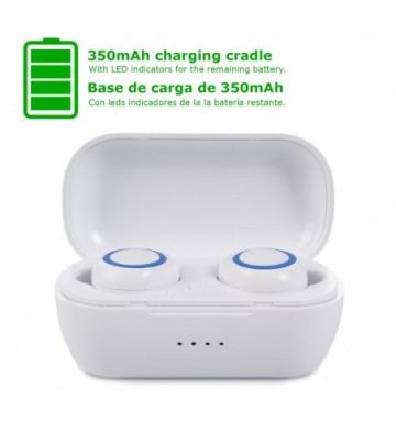 DAM.Auriculares TWS M2 Bluetooth 5.0 con base de carga de 350mAh. UNICA.7x2,9x3,9 cm. COLOR: Blanco .