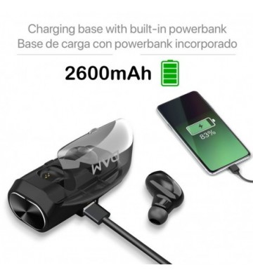 Auriculares DAM V6 TWS Bluetooth 5.0 con base de carga powerbank.