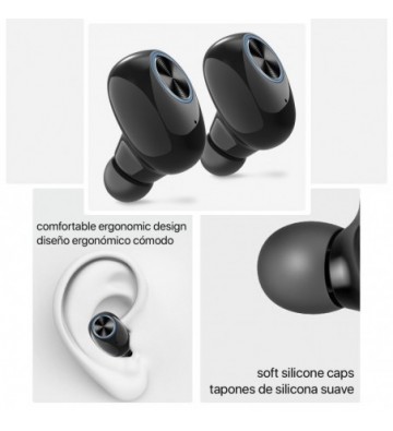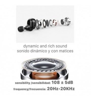 • Incluyen tapones de silicona en 3 tamaños para adecuarse al tamaño de tu oreja y cable de carga USB-micro USB.