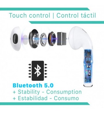 • Auriculares táctiles con funciones de control de reproducción y llamadas.