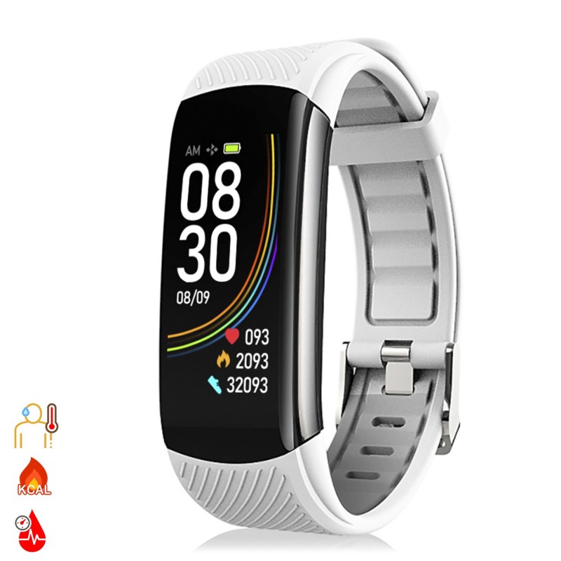 Pulsera inteligente T118: Funciones: • Notificaciones de llamada entrante, mensajes, aplicaciones tipo Whatsapp, Facebook, Wechat, QQ. • Interfaz personalizable y correas intercambiables. • Disparador remoto de la cámara del teléfono. • Reloj despertador. Funciones de salud: • Monitor de temperatura corporal, mide la temperatura corporal de ancianos y niños fácilmente y sincroniza los datos con la APP. • Monitor de ritmo cardíaco, monitor de oxígeno en sangre, presión arterial (tensión), monitor de tiempo y calidad de sueño, sincroniza y guarda los datos en la APP. • Podómetro con registro de distancia, quema de calorías. Modos multideportivos: correr, montar a caballo y bádminton. • Aviso de sedentarismo. • Pantalla: Pantalla a color de 0.96 pulgadas • Bluetooth: Versión 4.0 • Batería: Batería de polímero de litio de 90mAh • A prueba de agua: Nivel IP67 • Compatible: Android4.4 e IOS 9.0 y superior • Peso de la banda inteligente: 15g. • APP: DayBand PVC Aleación_de_Metal