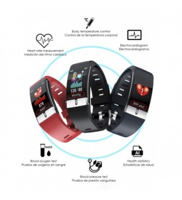 DAM.Pulsera inteligente E66 con medición de temperatura corporal, electrocardiograma, tensión y O2 en sangre. UNICA.2x1,2x6 cm. COLOR: Negro .