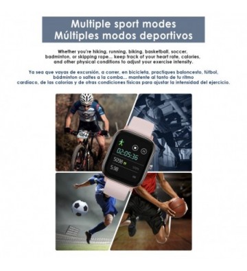 Smartwatch AK-P8 con monitorización de ritmo cardiaco presión sanguínea modo multideportivo y notificaciones.