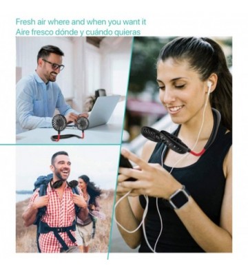 Mini ventilador dual diadema cuello con bateria recargable