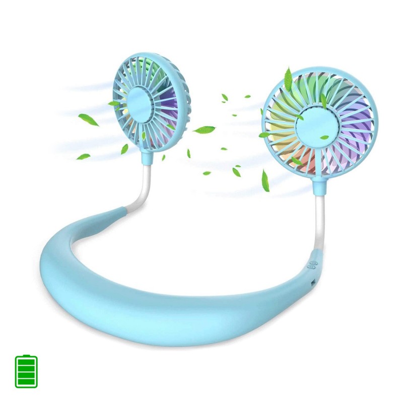 DAM.Mini ventilador dual diadema cuello con bateria recargable.UNICA.27x3,5x28 cm. COLOR: Azul Claro .
