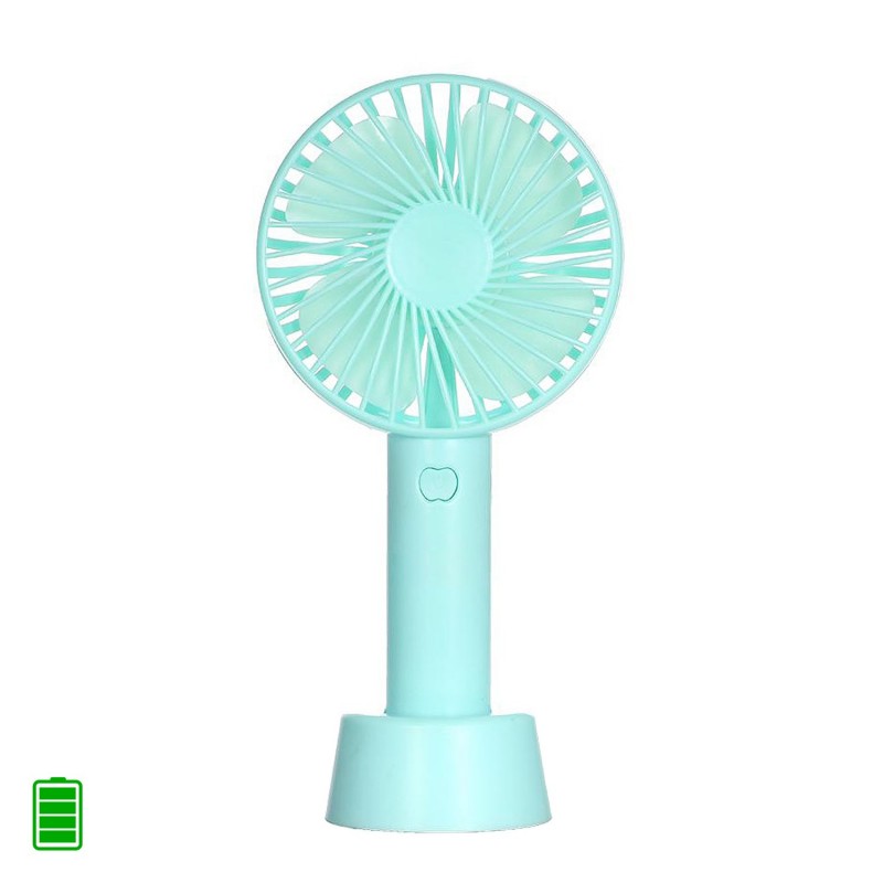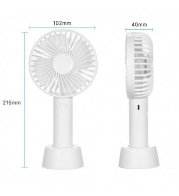 Mini ventilador de mano con bateria recargable con base para mesa.