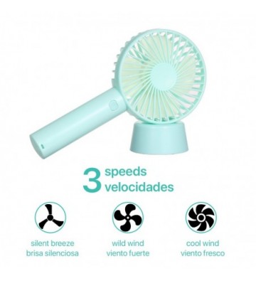 DAM.Mini ventilador de mano con bateria recargable con base para mesa. UNICA.11x4x22 cm. COLOR: Azul Claro.
