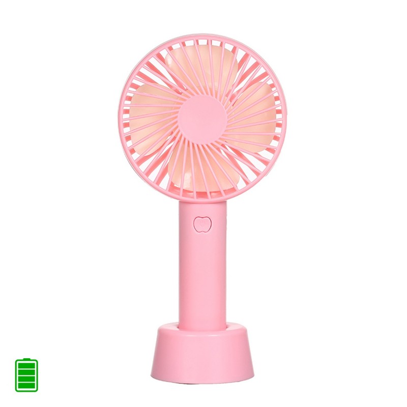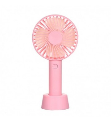 Mini ventilador de mano con bateria recargable con base para mesa.