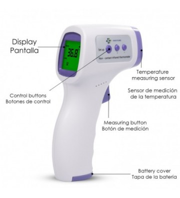 Termómetro infrarrojo HG01 sin contacto con temperatura corporal y de superficies. 32 memorias.
