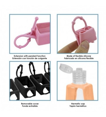 Llavero botella higienizante de manos alcohol rellenable 30ml de silicona con colgante