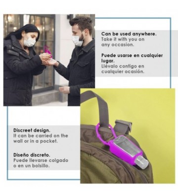 • Botella porta alcohol o hidrogel, rellenable, con 30ml de capacidad.