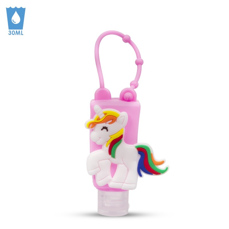 Llavero Botella higienizante de manos alcohol rellenable 30ml. Diseño unicornio.