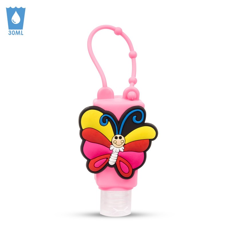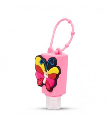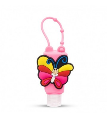 Llavero Botella higienizante de manos alcohol rellenable 30ml. Diseño mariposa.